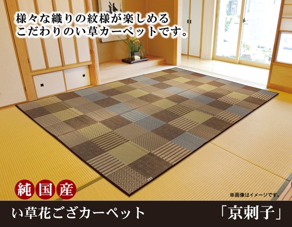 【商品名】純国産 日本製 い草花ござカーペット 『京刺子』 ブラウン 江戸間4.5畳(約261×261cm)