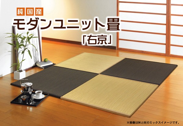【商品名】純国産(日本製) ユニット畳 『右京』 82×82×2.5cm 2枚(ベージュ1枚 ブラック1枚)1セット