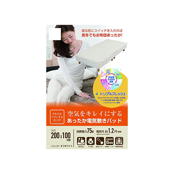 야마젠(YAMAZEN) 공기를 깨끗하게 한 씻을 수 있 따스한 전기깔개 패드 (200×100cm) 믹스 flannel 소재 두한족열 배선 실온 센서부 오프 화이트 YWP-200F(