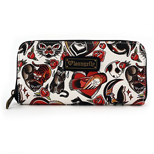 Studio : Loungefly Publisher : Loungefly Binding : Apparel Product Description This wallet combines two of our favorite things: tattoos and cats! Printed on front and back. This boutique-quality wallet has a bronze metal and black resin metal label with Loungefly's logo. Zip around closure. 8 card slots, 2 bill-size/checkbook slots, and compartment is divided by a center zippered pouch which makes two additional slots to stash your receipts. Fully lined in black and white cat print fabric. 8 in x 4 in x 1 in. Vegan friendly. 0