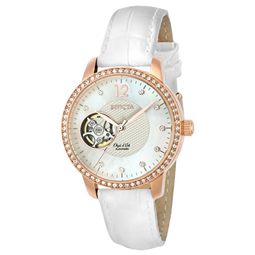 -. Title : Invicta Women's Objet D Art White Leather Band Steel Case Automatic Analog Watch 22622