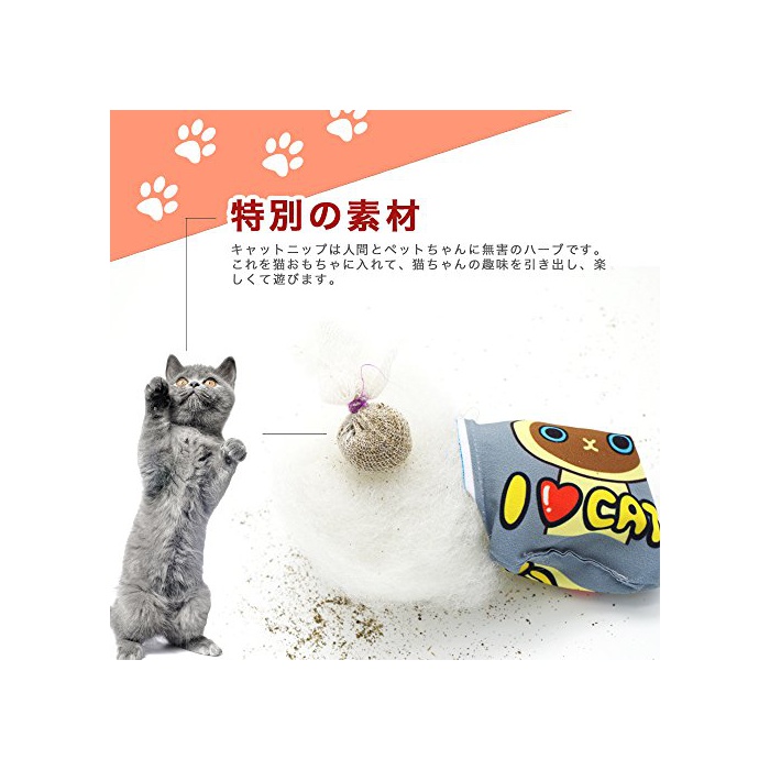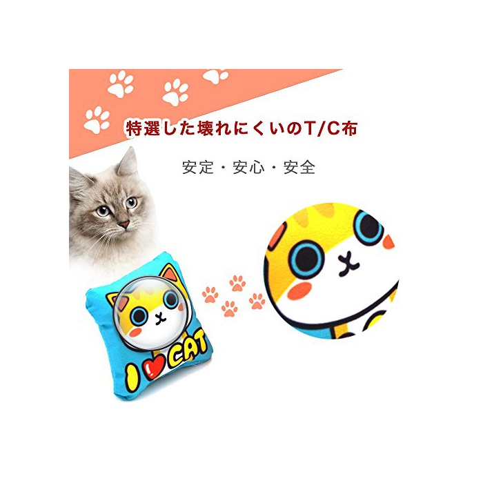 독특한 디자인:미니 다키마쿠라(안고 자는 베개)형의 모양에,6종의 고양이의 도안도 카피 하고 있습니다. 고양이의 시각을 자극하고, 꿈속에서 장난감을 뒤미처 놀이에 옵니다.