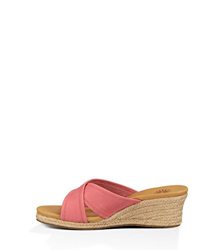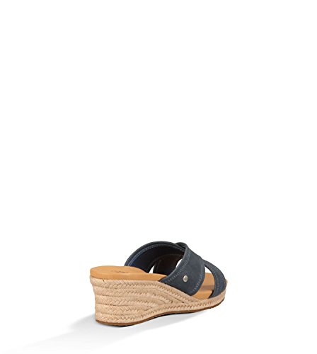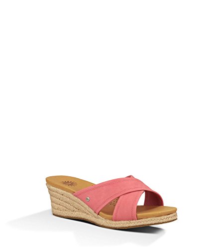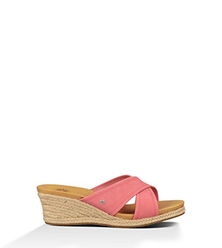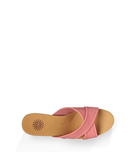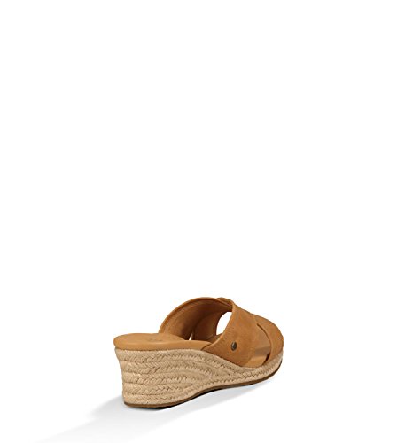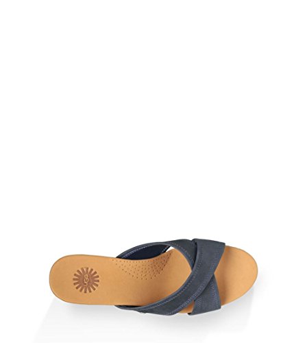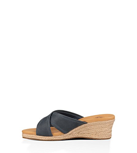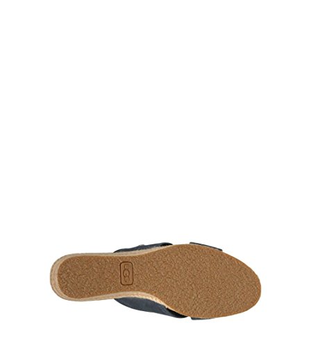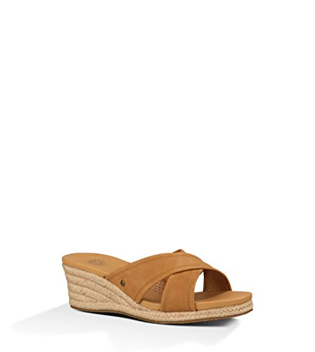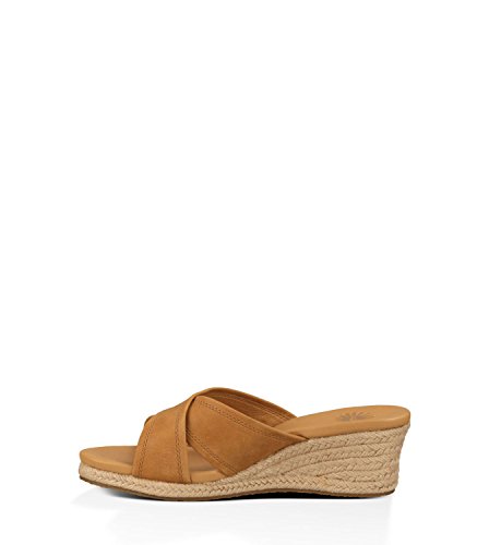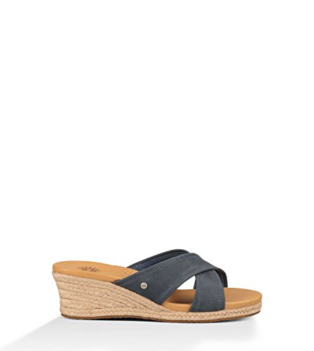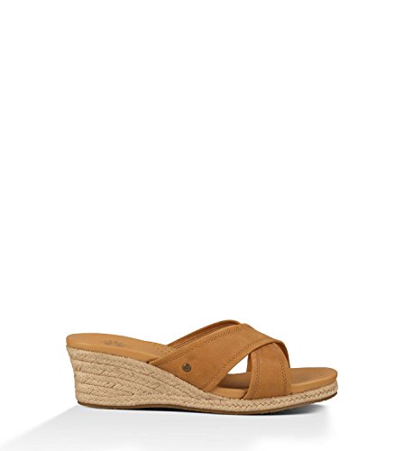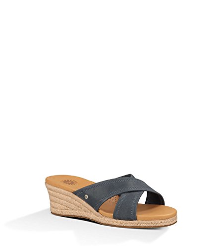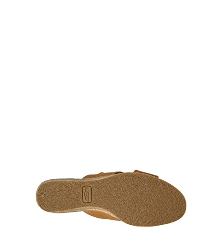 Studio : Deckers Outdoor Corporation Publisher : Deckers Outdoor Corporation Binding : Apparel Product Description A fresh approach to the slide, the Gwyn features lightly textured leather straps in a palette of easy spring shades. An ultra-cushioned footbed and a Poron® and EVA blended sole topped with buttery soft leather make this jute-wrapped wedge ideal for all-day wear. Collection Details: Insole: Plush Poron® and EVA with arch support covered in a buttery-soft leather sock cover; heat embossed UGG® logo on heel Outsole: 2" wedge with molded gum rubber outsole and UGG® logo Style Details: Subtle textured leather upper Jute wrapped midsole 7mm UGG® logo rivet 0