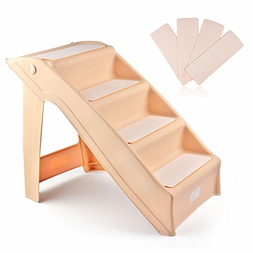 -. Binding : Misc. -. Brand : Lovely Pets -. EAN : 0602281972061 -. Feature : An attractive, affordable way to help your pet reach her favorite napping place / Safety siderails let your pet climb with confidence; Carpeted stair treads for better traction / Perfect for helping pets reach high places; such as tall beds / Weigh only 6 lbs.; but support over 120 lbs; Ideal for small or medium-size dogs / No assembly required; Folds down for easy storage or transport -. Label : USA -. Manufacturer : USA -. PackageQuantity : 1 -. ProductGroup : Pet Products -. ProductTypeName : PET_SUPPLIES -. Publisher : USA -. Studio : USA -. Title : Folding Pet Stairs Dog Cat Step Ramp Ladder Large Portable for Tall Bed in Beige -. UPC : 602281972061