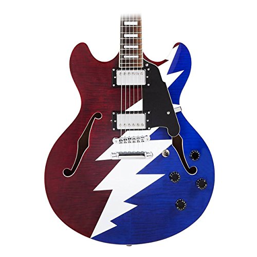 Product DescriptionPremier Series DC Grateful Dead Semi-Hollow Electric Guitar Red, White, and Blue Lightning Bolt0