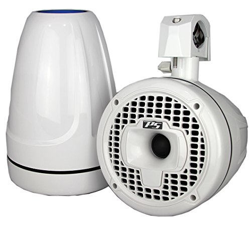 SPORT6-Wi, Power Sports 6" High Performance, Best Marine Wakeboard Tower Speakers, with Front Headlight and Blue Mood Lighting, White.