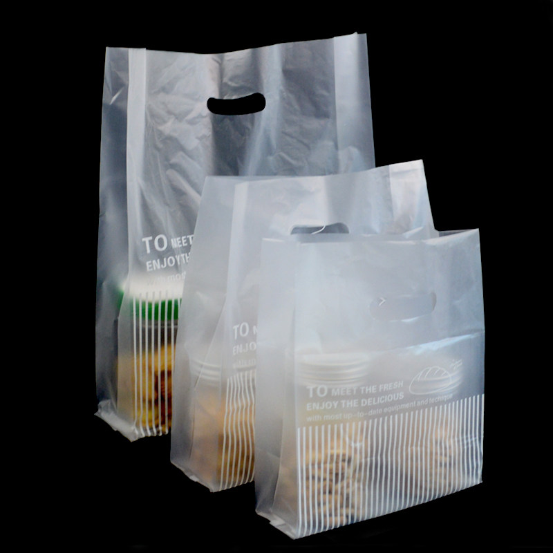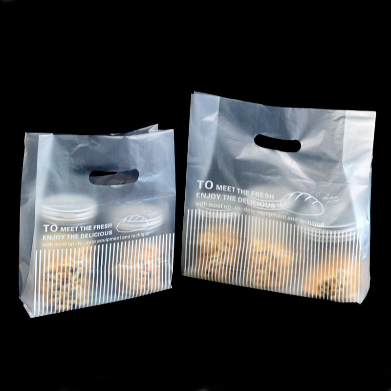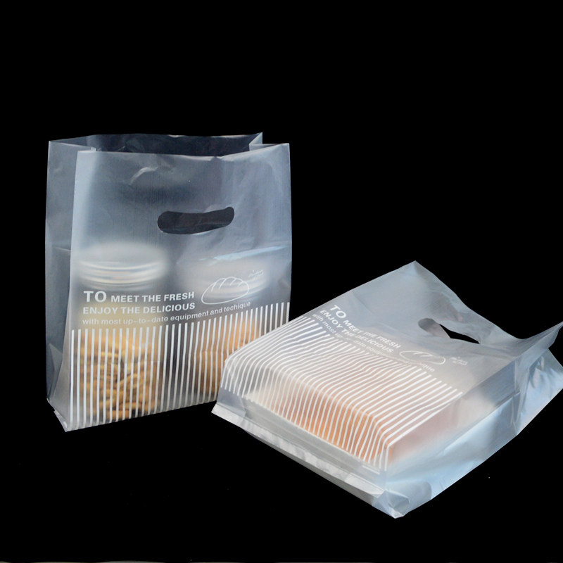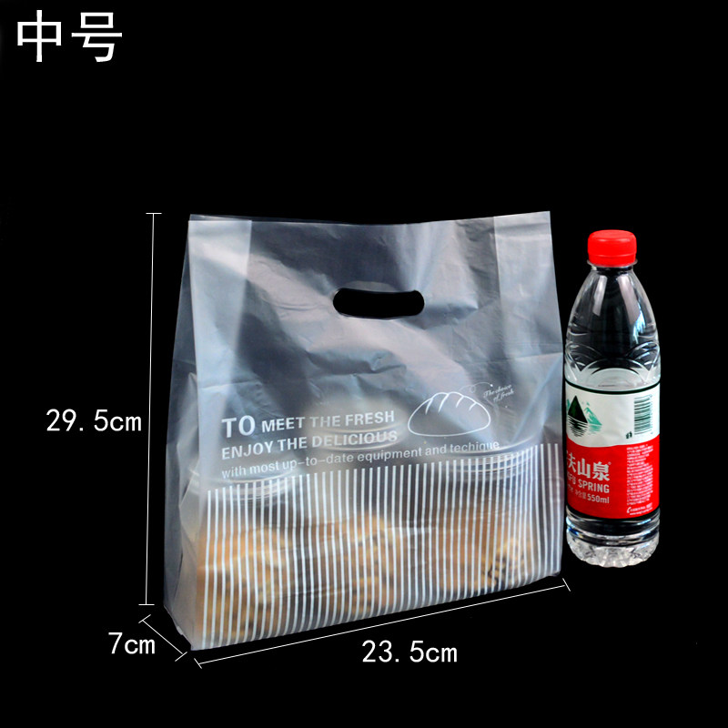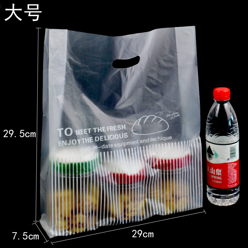 竖条烘焙手提袋蛋糕面包外卖打包袋塑料食品包装袋100个