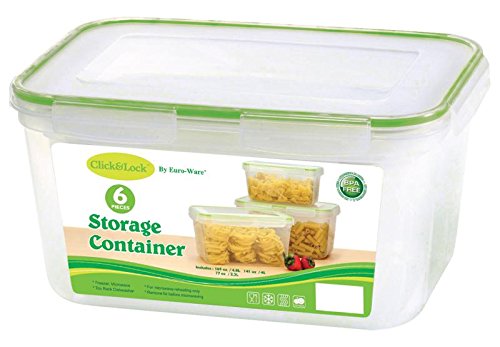 Euro-Ware 6 Piece Click and Lock Large Rectangular Kitchen Food Storage Containers with Lid, Clear