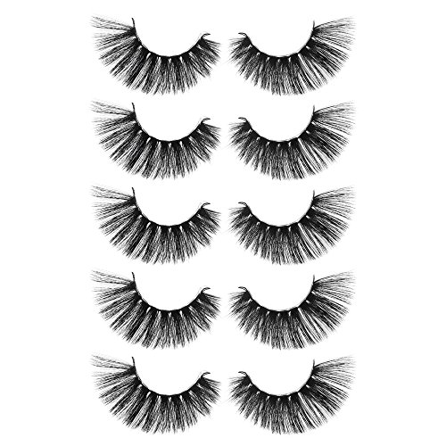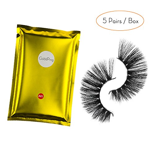 GoodPing 5 Pairs/Box 100% Siberian Mink Fur Luxurious Wispy Natural Cross Long Fake Eye Lashes 3D Real Mink False Eyelashes (A01)