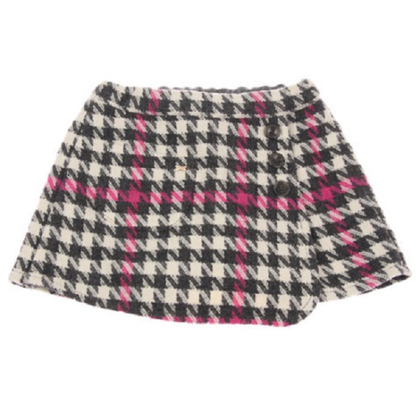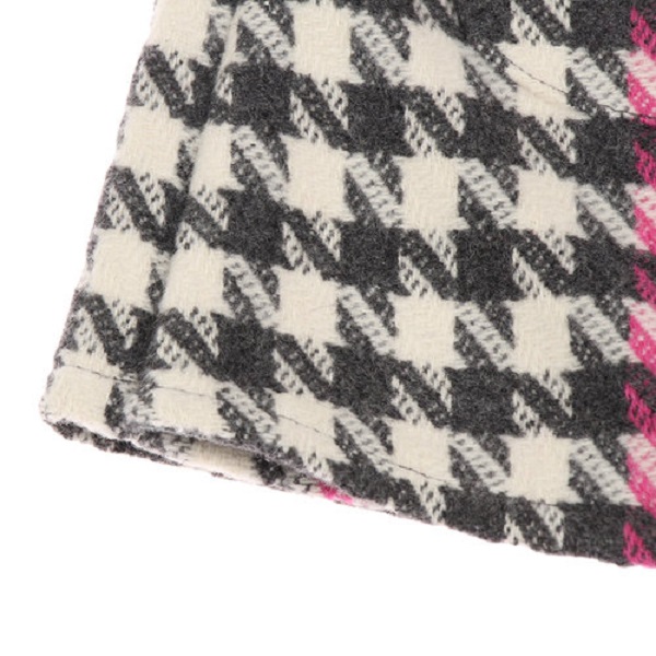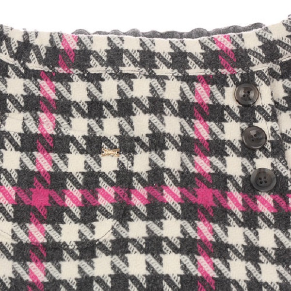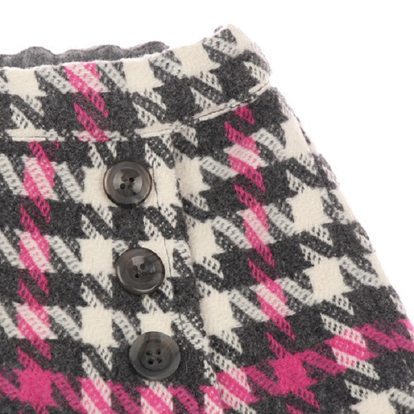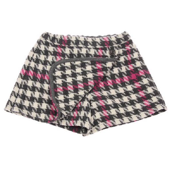 -핑크, 그레이 칼라 포인트가 있는 하운즈투스체크 큐롯팬츠로 앞쪽은 랩스타일로 된 스타일입니다.