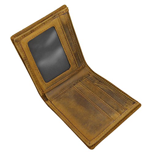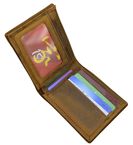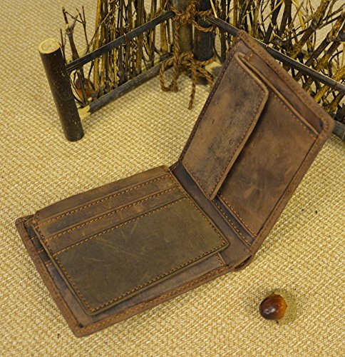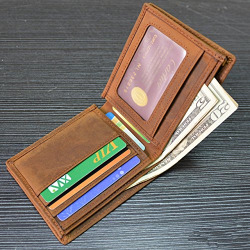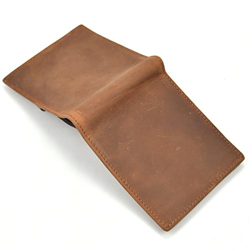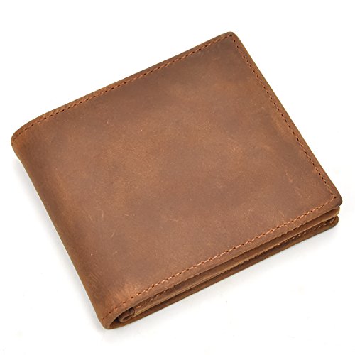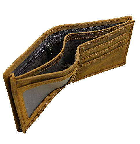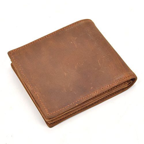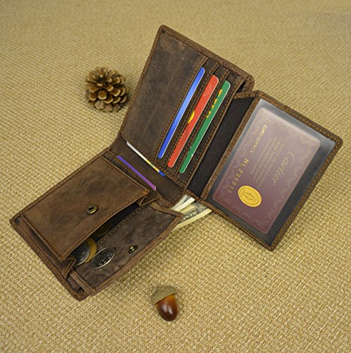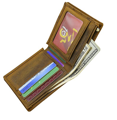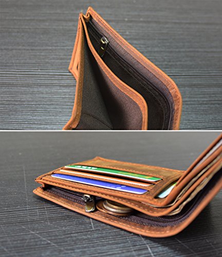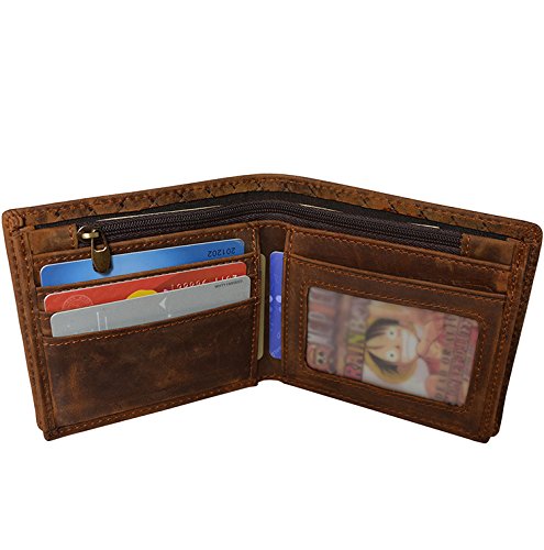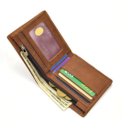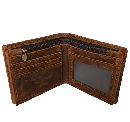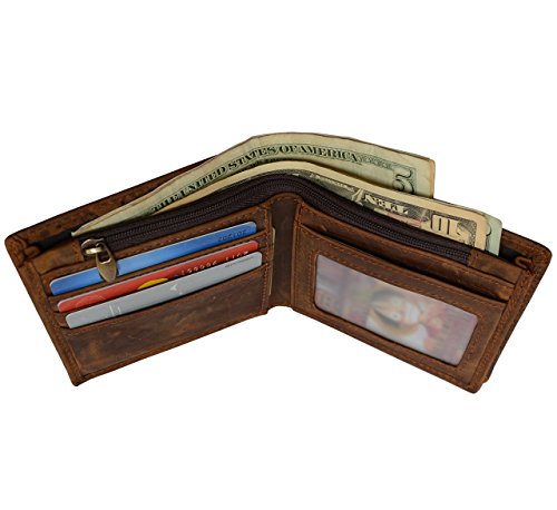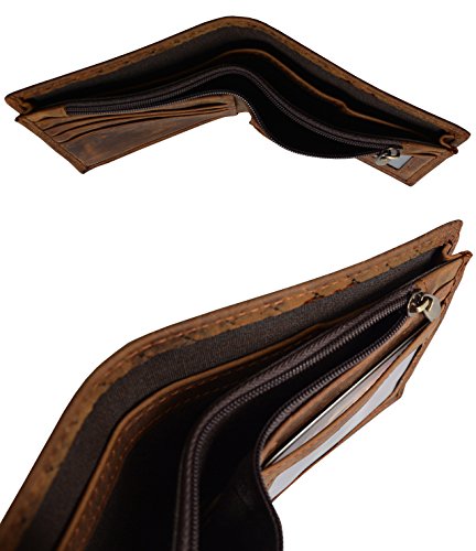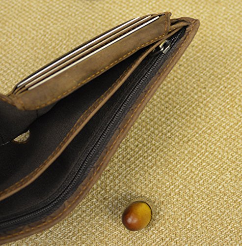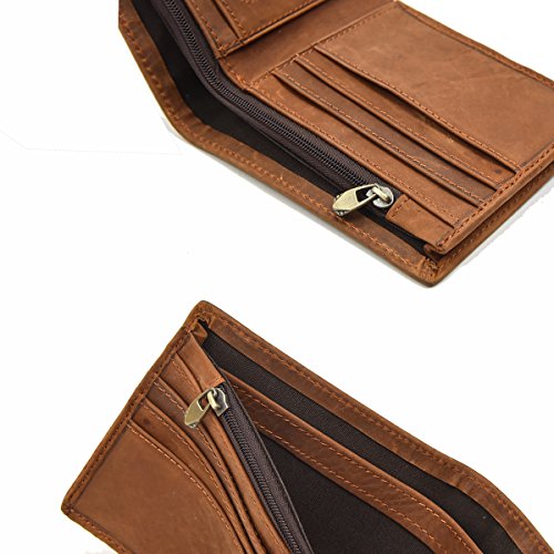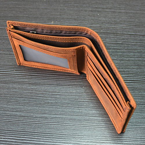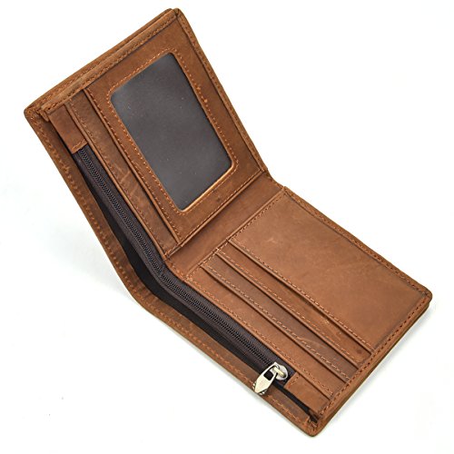 Men's Genuine Leather Bifold Wallet With Long Zipper Pocket Brown Pocket Wallet