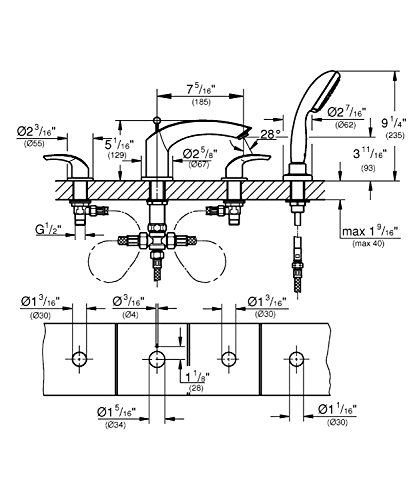 Eurosmart New Bath Mixer 4-Hole Deck Mounted Us