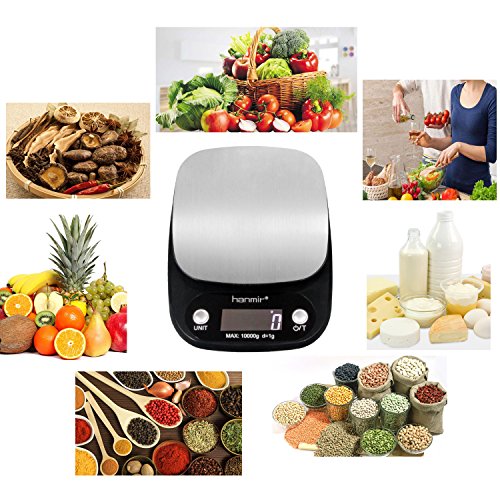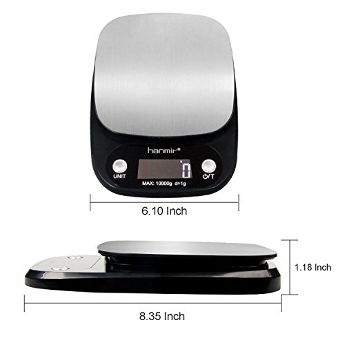 Brand: Hanmir NW: 355g( include 3 batteries) Parameters:212*155*30mm Weight Capacity:3g-10000g Division:1g/0.1oz/1ml/0.1fl.oz ? Measurement Units:g/lb:oz/ml/fl.oz ? Power supply:3*AAA?batteries(included)