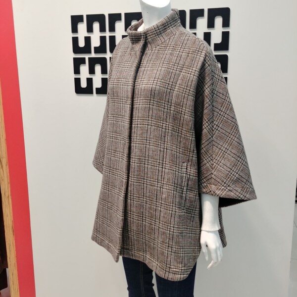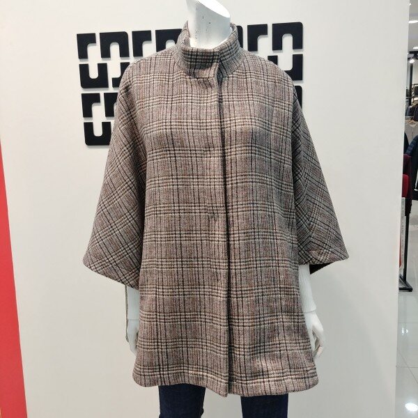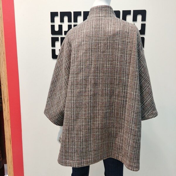 판초 디자인으로 러블리하면서도 스타일리쉬한 연출을 하기 좋은 체크 패턴의 자켓 입니다 깔끔한 디자인으로 원피스 위에 입을수 있고 세미 정장 룩으로 코디하기 좋습니다 한겨울에 넥에 퍼 풀러와 함께 둘러 고급 스럽게 연출하기 좋습니다 (29 1/2 인치 기장 입니다)