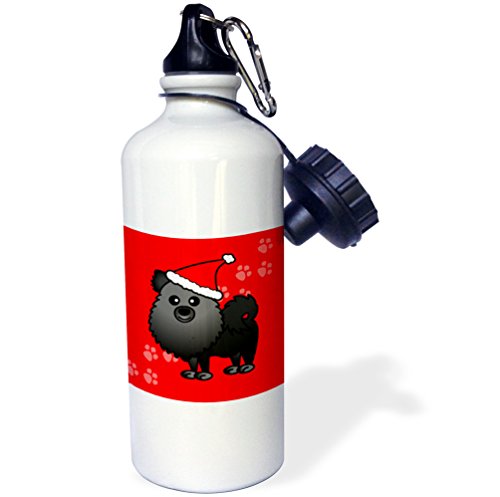 3dRose wb_10863_1 Cute Black Pomeranian Red with Santa Hat - Sports Water Bottle, 21 oz, White