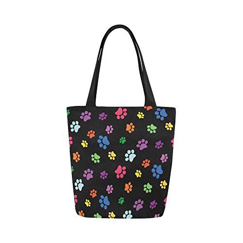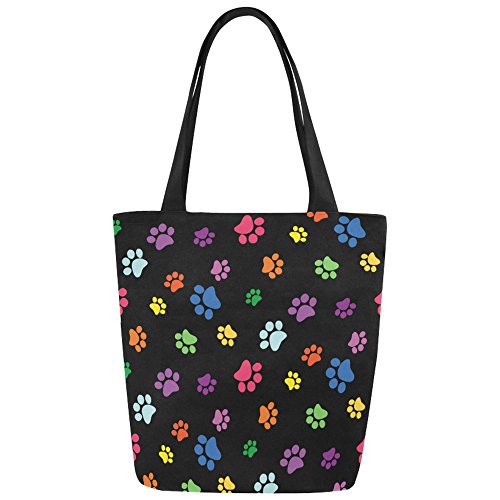 InterestPrint Rainbow Dog Paw Print Canvas Tote Bag Handbag Shoulder Bag for Women Girls