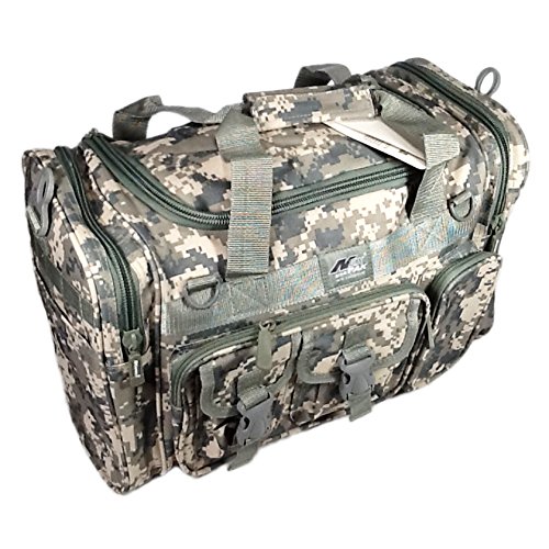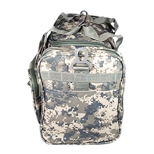 -. Feature : Perfect as a carry-on bag for outdoor activity! / Digital Camouflage, Tactical style duffel bag / Capacity: 1800 cu. in. / Size: 18"(Width) x 11"(Height) x 9"(Depth) / MOLLE style straps, Heavy duty U-zipper
