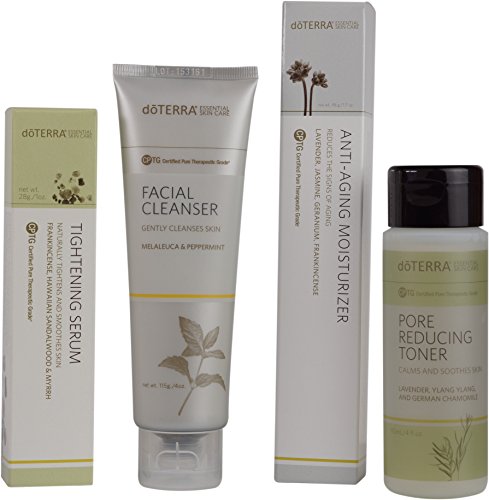 With a careful selection of CPTG Certified Pure Therapeutic Grade® essential oils added in generous proportion to each product, the Essential Skin Care line includes cutting-edge technologies which complement the essential oils in targeting the visible signs of both cellular and mechanical aging. This Skin Care System contains doTERRA's Essential Skin Care Facial Cleanser, Pore Reducing Toner, Anti-Aging Moisturizer, and Tightening Serum.Feature