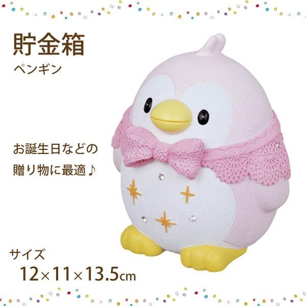 レースのケープでお洒落したピンクペンギンの貯金箱!お誕生日の贈り物などに最適です。 製造国:中国 素材・材質:ポリレジンラインストーン 商品サイズ:12×11×13.5cm 仕様:取り出し口:底部 ※サプライヤー直送品 ご注文後2~3営業日後の出荷となります【商品名】貯金箱 ペンギン G-5131P