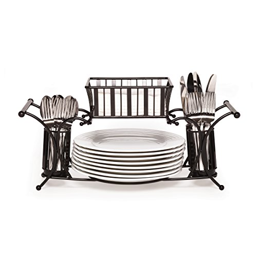 This caddy is a striking way to keep dinnerware and flatware organized and easily accessible to guests while entertaining