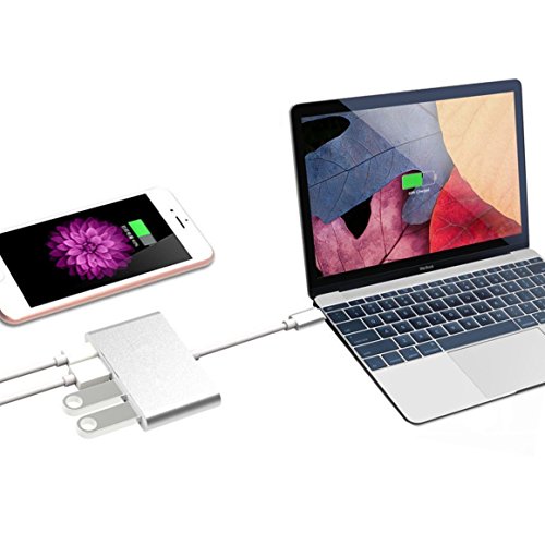 USB C to USB 3.0 Hub, ARKTEK Type C (male) to USB A 3.0 (female) with Type C (female) Charging, 4-in-1 Hub Adapter for MacBook Series Chromebook Pixel and more (Aluminum, Silver)