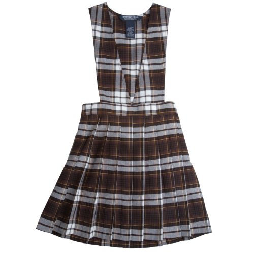 Perfect to layer over any top, this jumper will add comfort and style to her school look. 100% polyester 50 wash tested for comfort that lasts Elastic waist for comfort and fit V-neck All-around pleats Side zipper and button for easy closure Machine washable ImportedFeature