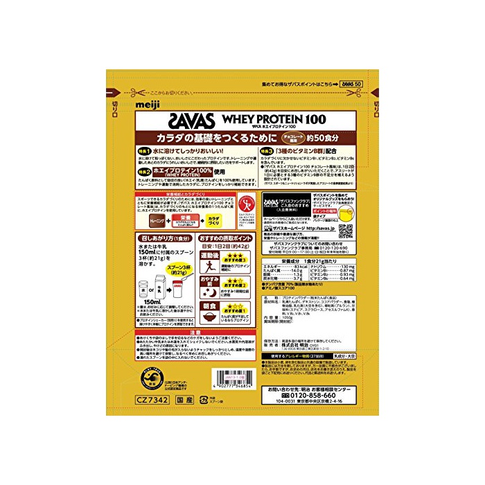 원본상품명: 明治 ザバス ホエイプロテイン100 チョコレ?ト味 【50食分】 1,050g