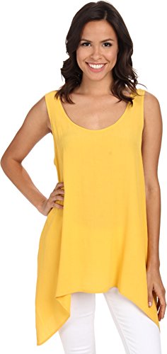 Fabricated in a decadently soft crepe that drapes the body in a flattering silhouette. Scoop neckline. Sleeveless design. Handkerchief hemline. 100% viscose. Dry clean only. Made in the U.S.A. and Imported.