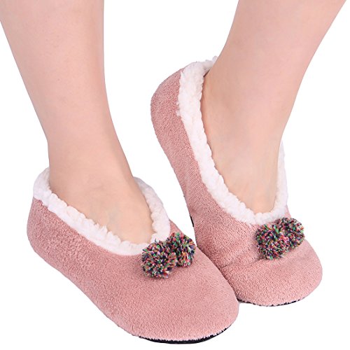 -. Feature : UNLTRA-SOFT MATERIAL -- Made of polyester. Soft short plush exterior with fuzzy lining made them comfortable to wear, and protects your feet from cold weather. / SUPER CUTE DESIGN -- These unique slipper socks are decorated with pom poms, you can wear them and socks at the same time to keep warmth. / NON-SLIP BOTTOM -- Black thick outsole with anti-slip beads can prevent cold from wood/ tile floor and make you safe. / MULTIPLE OPTIONS -- Relax your muscles and give you maximum comfort. Two sizes suit for most: women shoes size 6-8.5. / ADDED VALUE -- Both hand and machine washable. Suitable for Office, Home, Living room and Casual wear. Fuzzy comfy slipper socks with pom poms/ ball, a great Christmas, Birthday, Halloween gift for your family and friends.