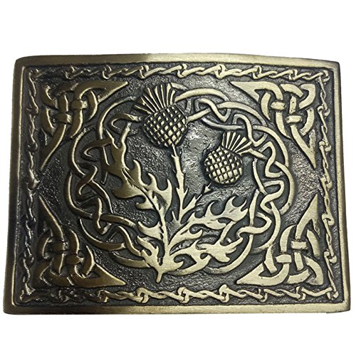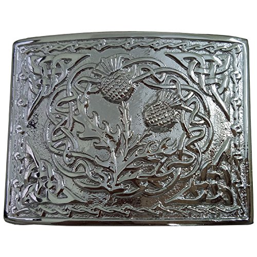 Binding : Apparel Product Description Scottish Thistle Kilt Belt Buckle Celtic Knot Work Very Fine Polished High Quality Chrome and Antique Finish. The Buckle Is a Piece Of Jewelry That Is Usually Worn On The Lower Corner Of The Outer Apron Of a Kilt. Kilt Buckle Size Measures 3" (7.75cm) x 2.50" (6.25cm) Suitable to wear with any kilt belt up to 2.5 inches wide This Scottish Stag Head Kilt Belt Buckle Is Completed With An Easy Swivel Fastening To Secure It On To The Fabric. Money Back Guarantee. 0