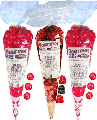 -. Title : Sour Balls (2) Fire Engine Red Cherry (1) Black Red Raspberries Candy (NET WT 27 OZ) Gourmet Kruise Signature Gift Bags