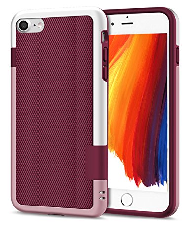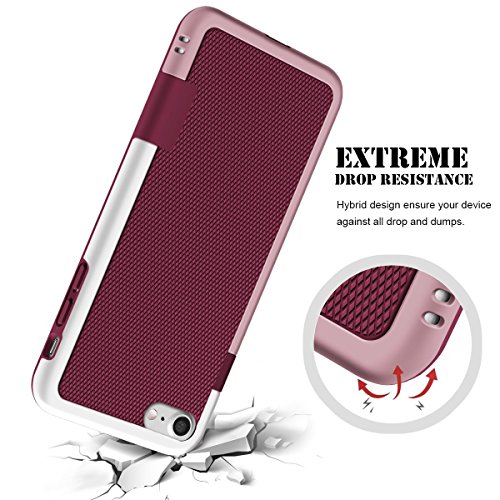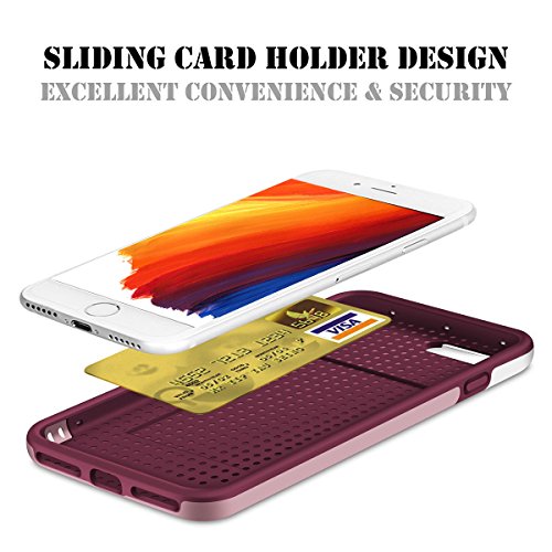 iPhone 7 Case Card Holder, iPhone 7 Cover Hard Case Flexible TPU Rubber Ultra Thin Slim Protective Bumper Easy Grip Design Hybrid Armor Defender Heavy Duty Shockproof for Apple iPhone 7 (2016)Wine Red