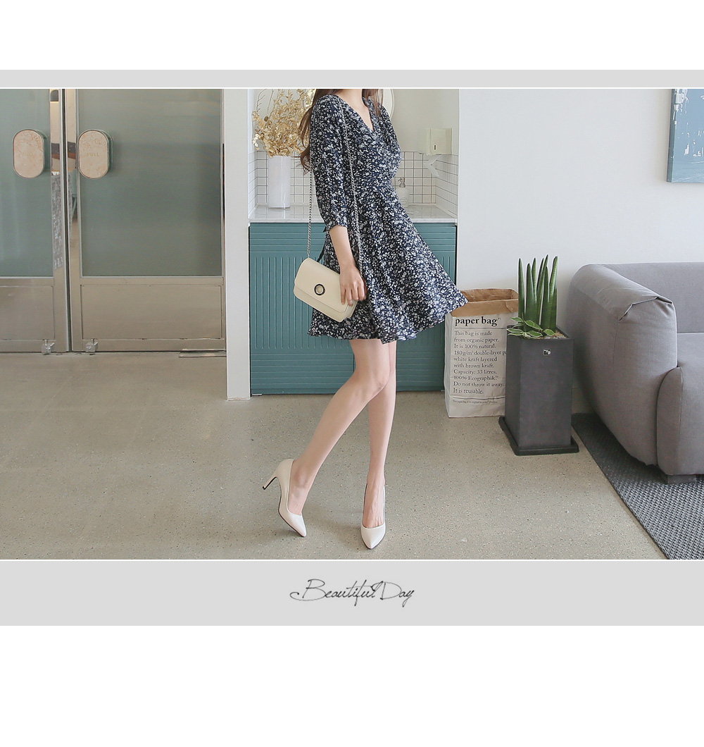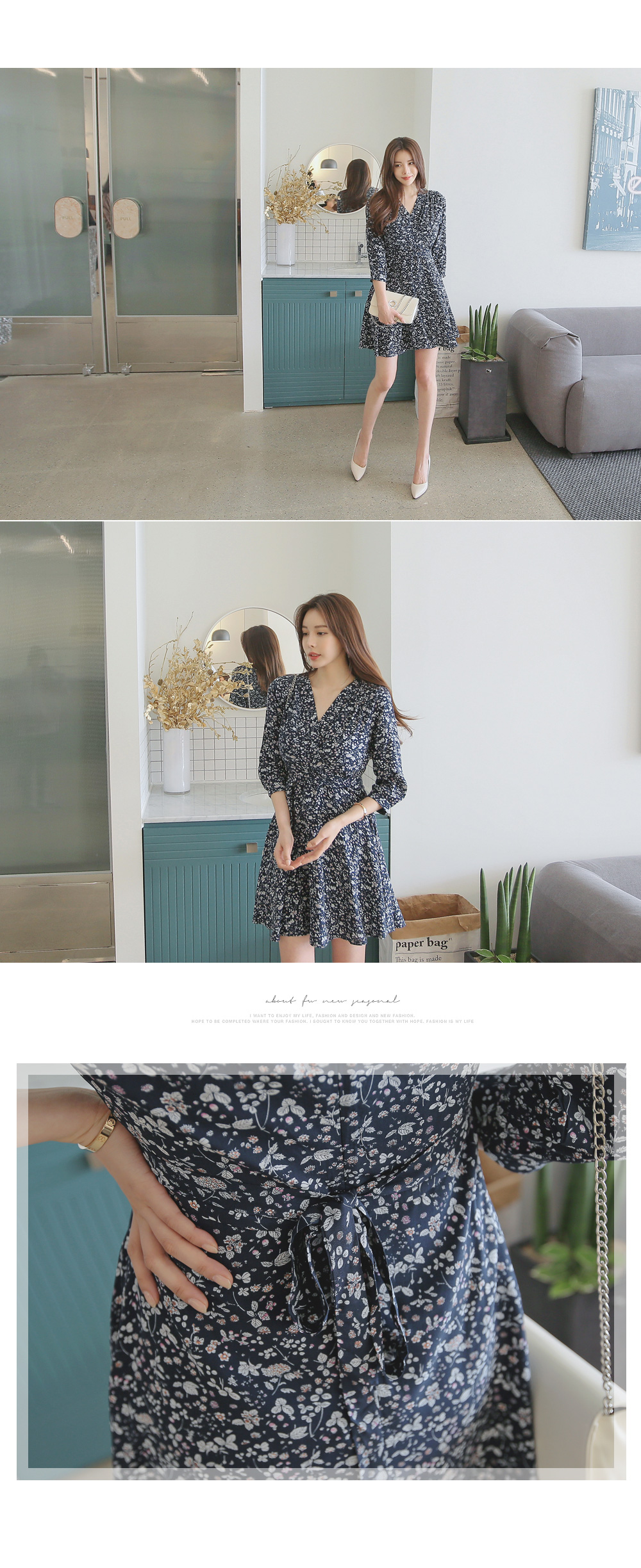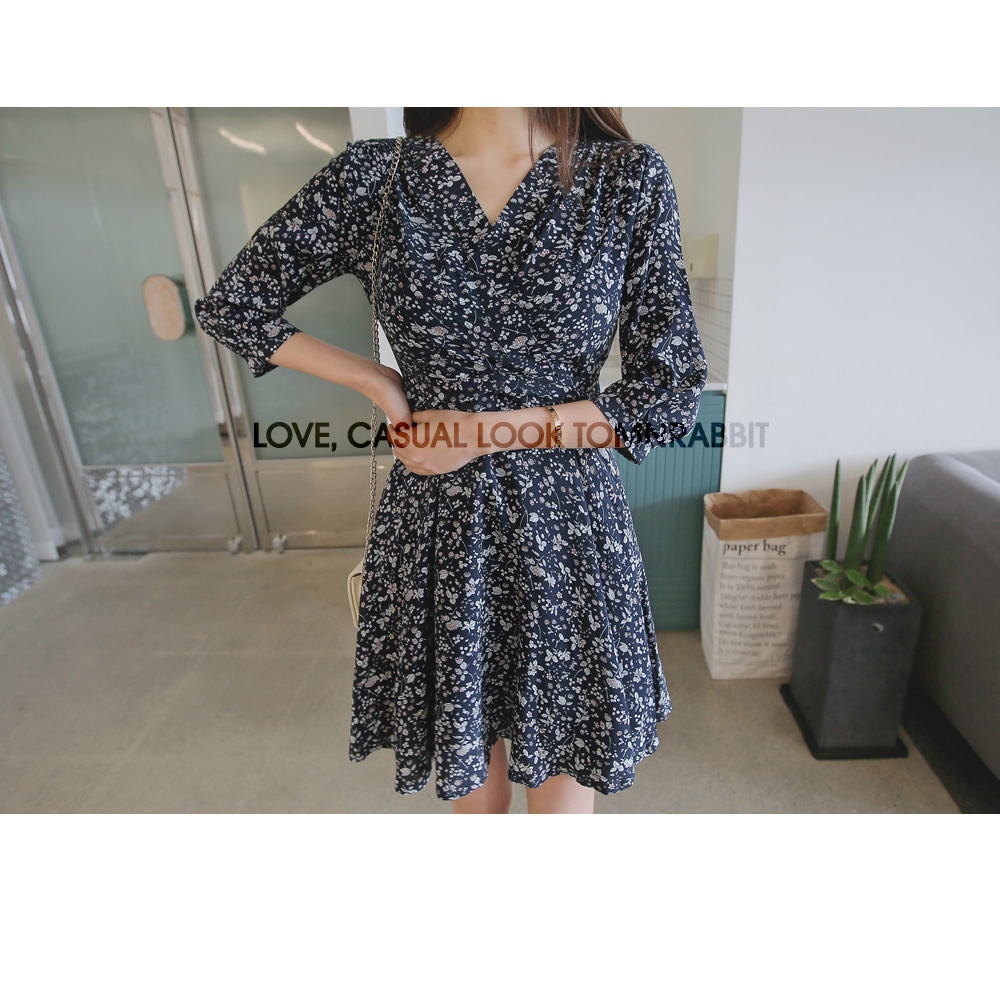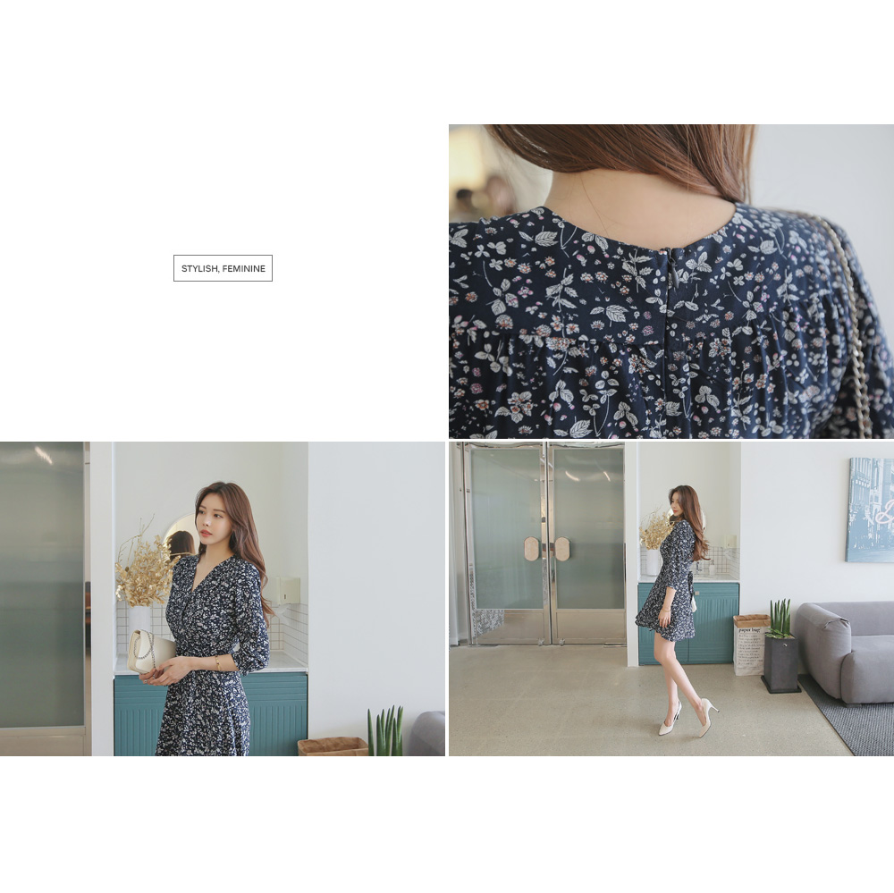 매력적인 플라워 패턴의 랩 디자인 원피스를 소개합니다.