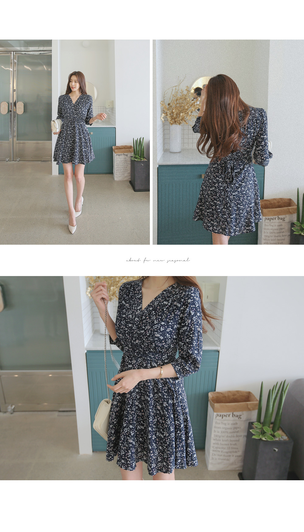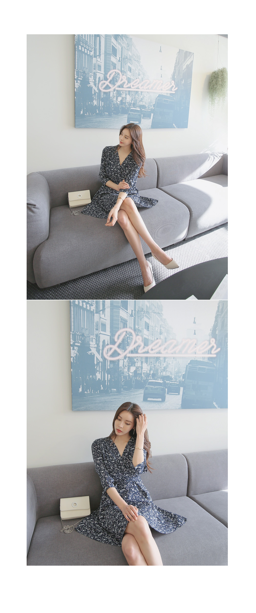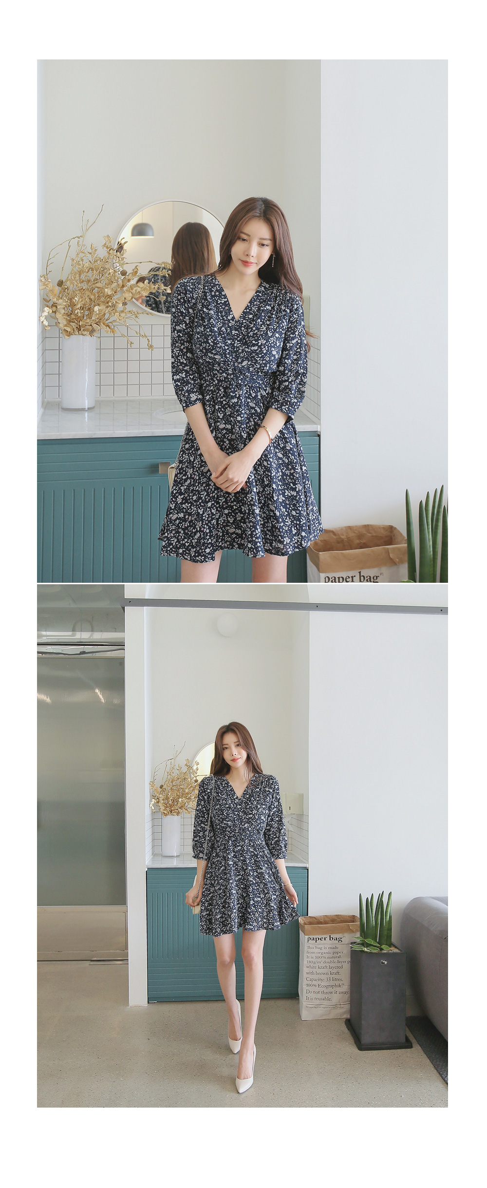 매력적인 플라워 패턴의 랩 디자인 원피스를 소개합니다.