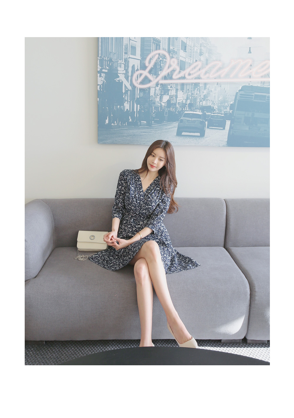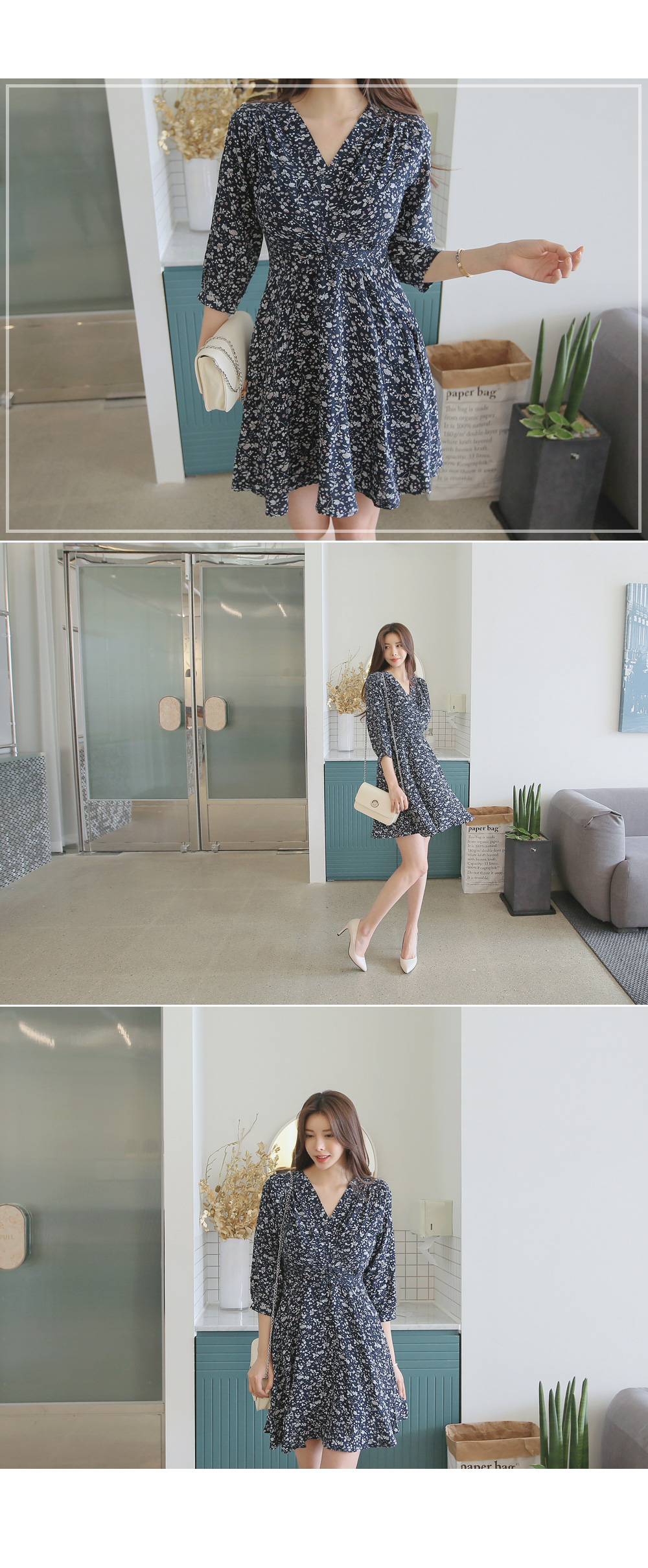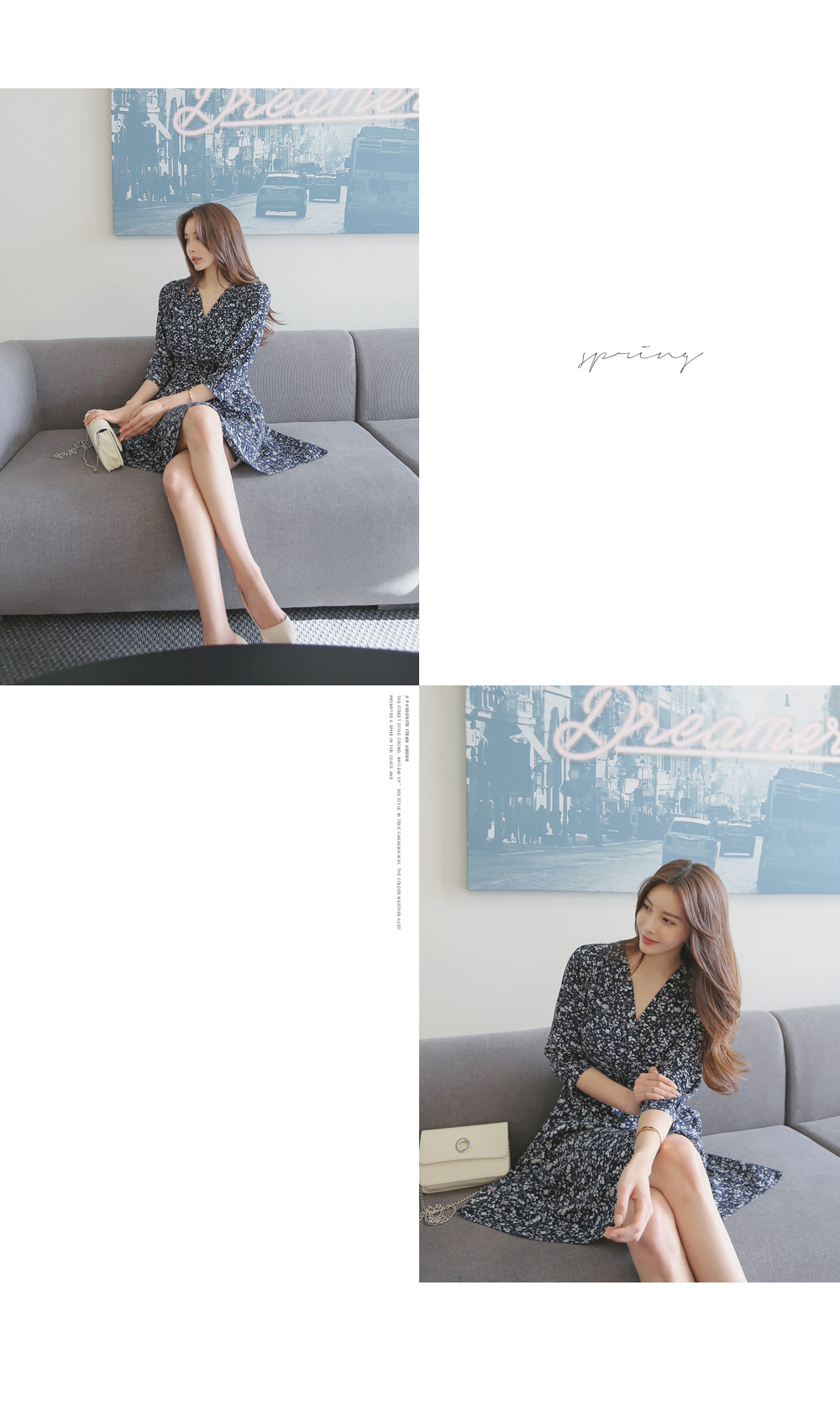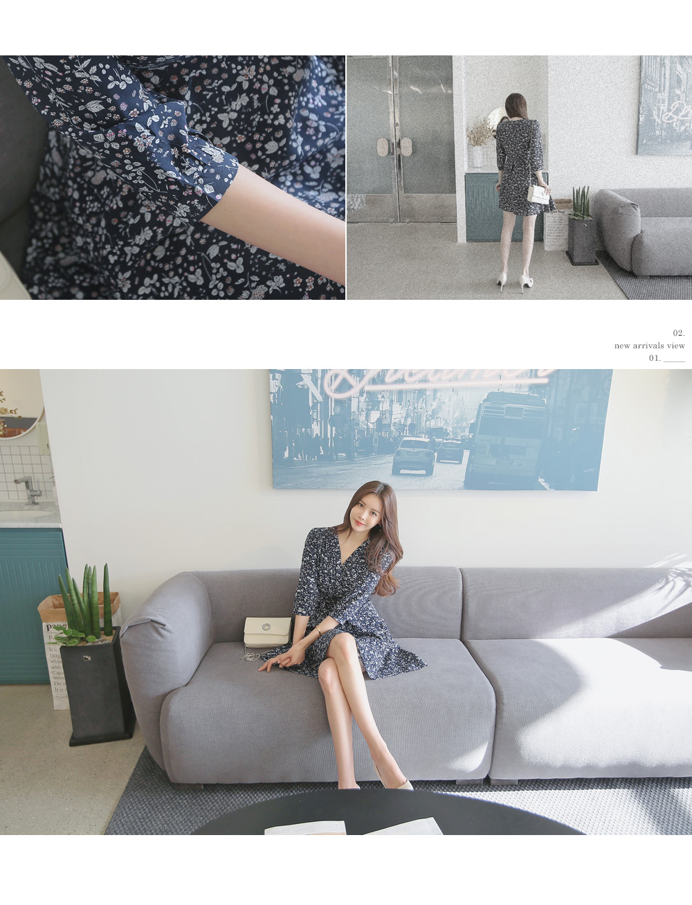 매력적인 플라워 패턴의 랩 디자인 원피스를 소개합니다.