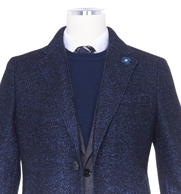 네이비 투톤 체스터코트입니다.멋스러운 네이비/블루톤으로 정장이나 캐쥬얼 한 느낌 모두연출 할수 있는 코트입니다.
