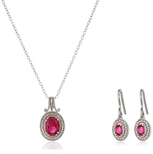 With elegance rivaling that of the most treasured heirlooms, this jewelry set includes colorful gemstones nestled in a pendant necklace and dangle earrings, which are decorated with elaborate sterling silver milgrain edging.