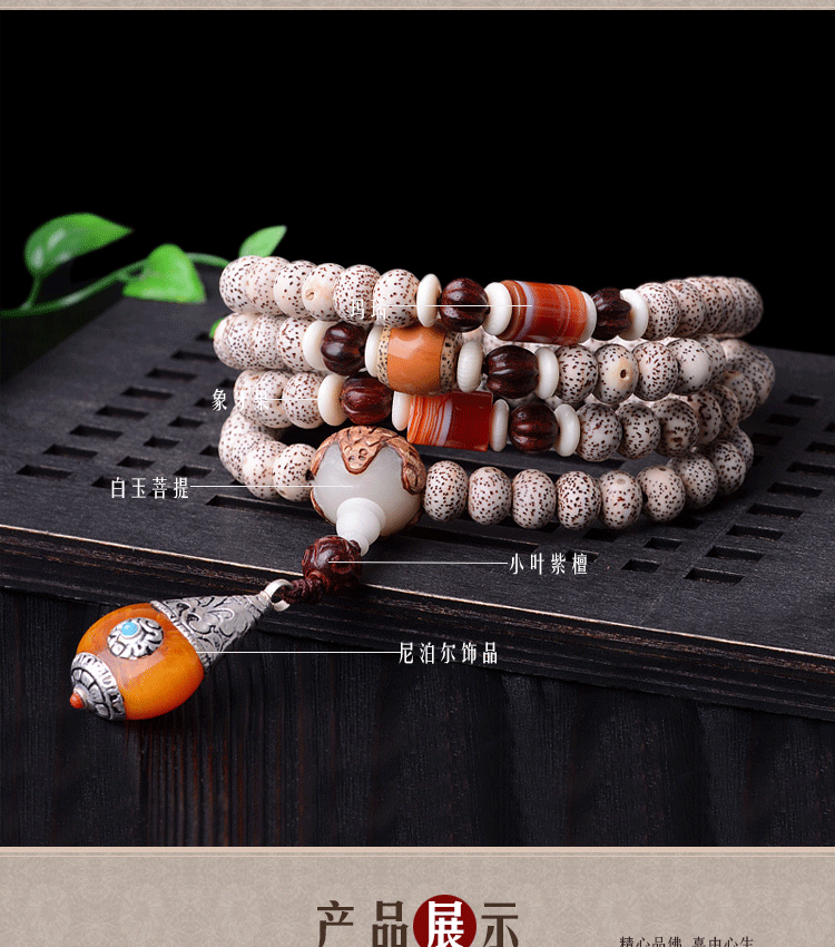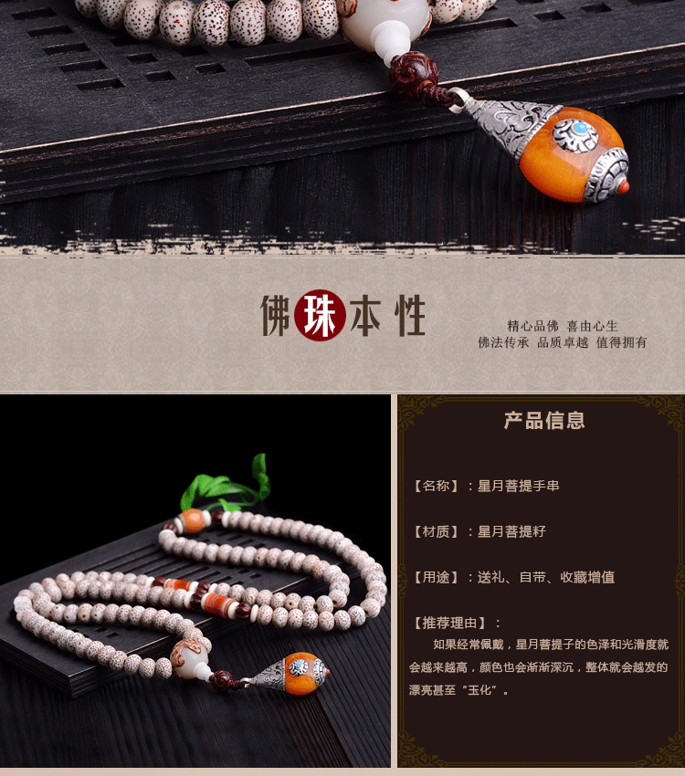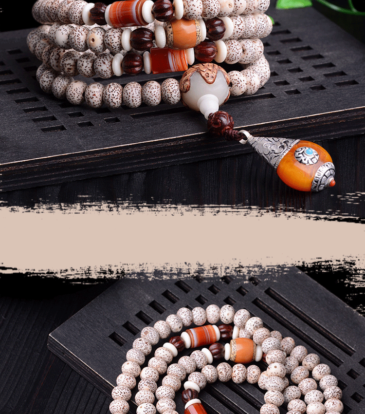 天然正月星月菩提子108颗藏式高密手串配尼泊尔吊坠男女项链