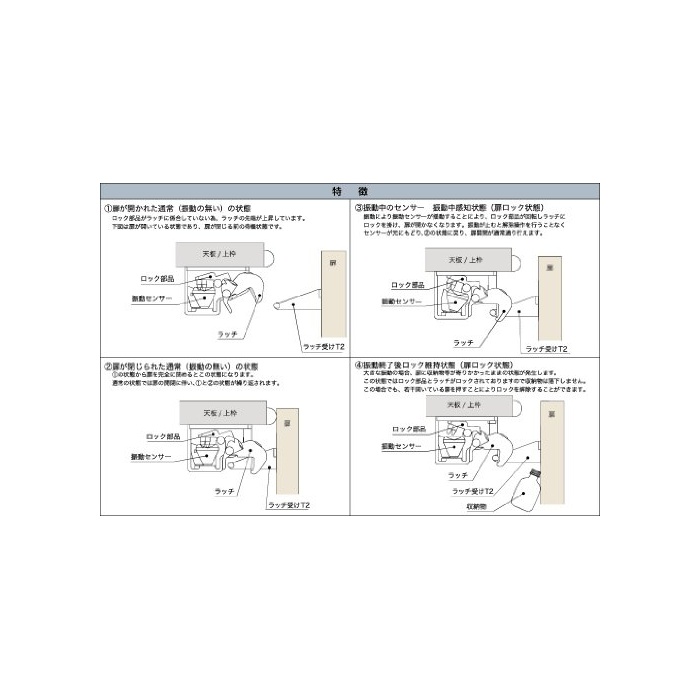 지진으로 흔들려도 문이 열리지 않는 방재 상품입니다.