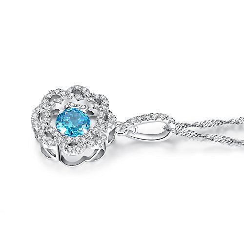 -. Title : Marbella "Flora" Sterling Silver Flower Pendant Necklace w/Cubic Zirconia (0.5 CT) Round Cut Gem, Elegant Charm, 18” Chain, Christmas Gift for Women