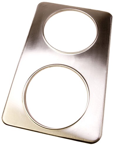 -. Feature : Turns your Full Steam Table Pan into holder for insets / 2 hole, 8 3/8" and 10 3/8" / Stainless steel / Fits on full size steam table pan / Measures 13" x 21"