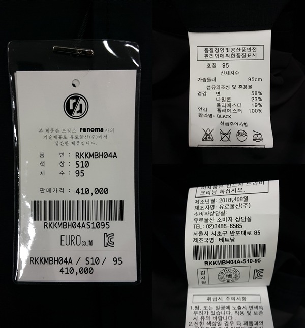 겉감 면 58% 나일론 23% 폴리에스터 19%