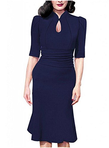 Destinas Women's Vintage Style Retro 1940s Shirtwaist Flared Tea Dress L Green