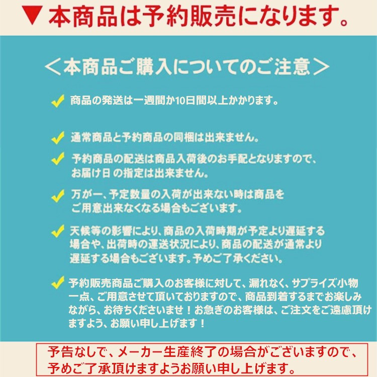 ※モニターによって実物と多少色具合が異なって見える場合もございます。 ※ファスナー・ホック・金具等の付属品は正しくお使い下さい。誤った使用および極度の負荷・衝撃がかかった場合は、付属品および製品が破損する恐れがございます。 お取り扱いにはご注意くださいませ。 ※輸入品なので、製造過程・輸送時・保管時等についたと思われる若干の小傷等があります、完璧なものを求める方はお買い上げをご遠慮下さい。 ※皆様により良い商品をより安くご提供させて頂けますよう、ご注文完了後のご交換・キャンセル・及び不良品以外のご返品・ご交換はお受け致しておりません。お申し込みの際は、サイズ・カラー等よくご確認の上、ご注文くださいますようお願い申し上げます。 ※商品に欠品がありご用意が出来ない場合は商品のお振り替えのご提案をさせて頂きます。 また重要事項のご連絡のやり取りをさせて頂く中、一定期間ご連絡を頂けない場合は一旦ご注文をキャンセルさせて頂く場合もございます。予めご了承ください。 |