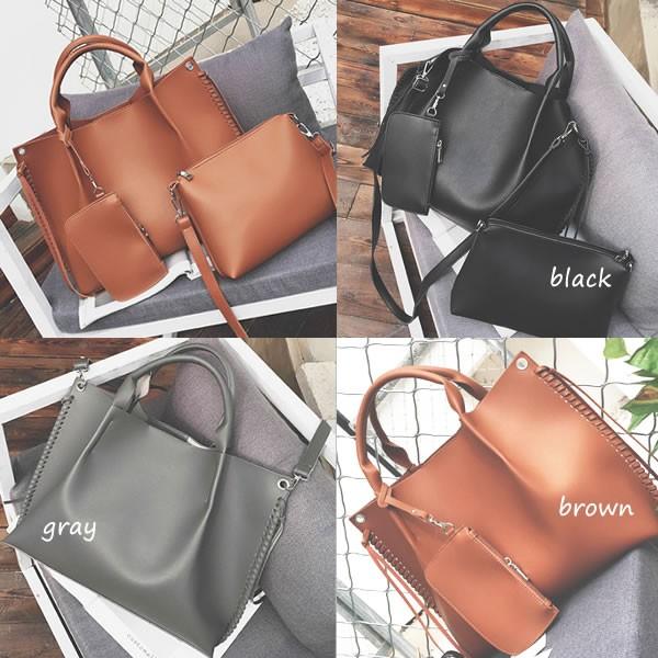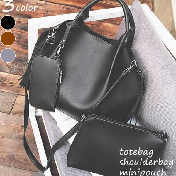 | フェイクレザー トートバッグ ショルダーバッグ ミニポーチ 3点セット 肩掛け バッグ レディース 黒 ブラック 3カラー 【トートバッグ レディース 黒 ブラック ブラウン グレー 鞄 かばん バッグ bag 通勤 ショルダー】 | |
