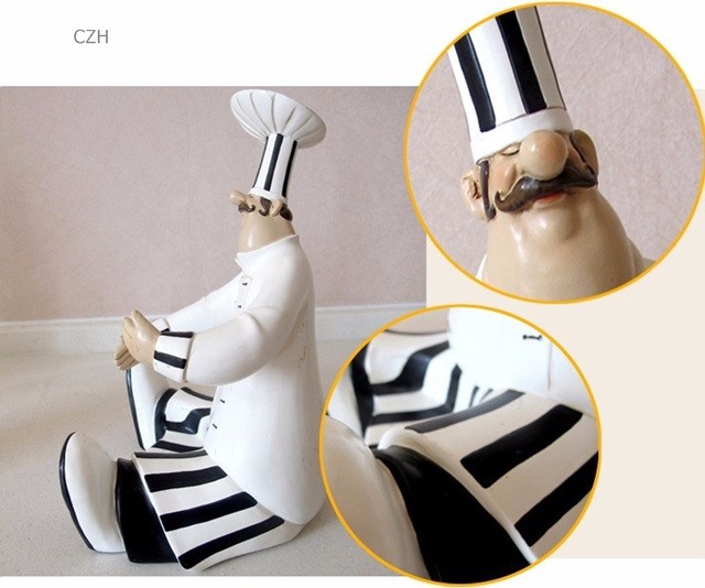 1. Description: Chef Statue Wine Rack Decorative Resin Barware and Drinkware Utensil Craft Ornament Accessories for Home, Bar and Restaurant.