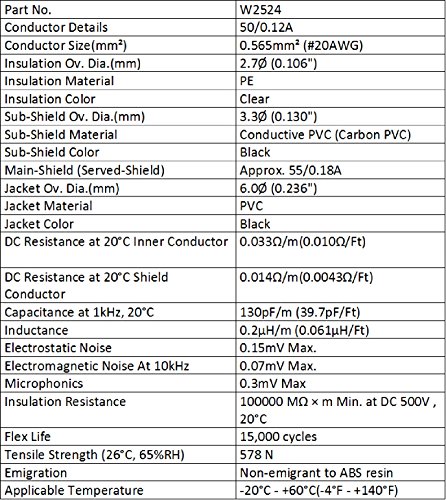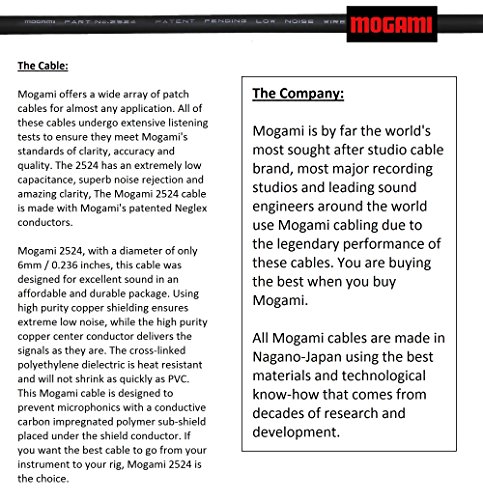 Mogami 2524 is a Low-Capacitance instrument patch cable. The conductive PVC sub-shield, served shield & the Oxygen Free Copper core ensure amazing clarity & superb noise rejection, canceling almost all electrical interference or microphonics.