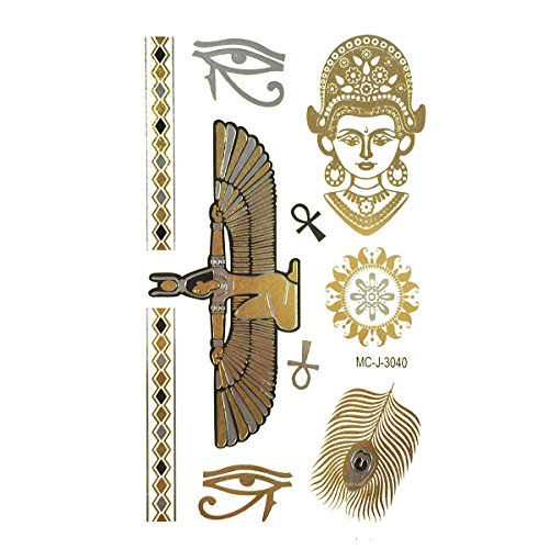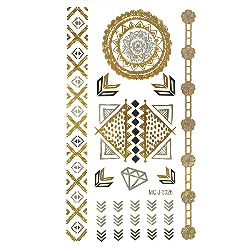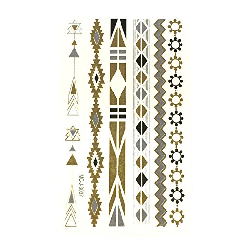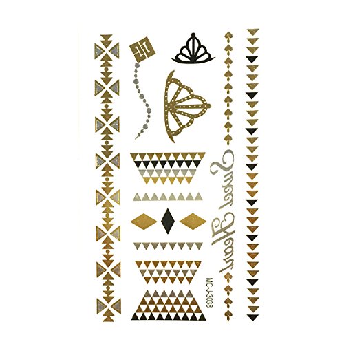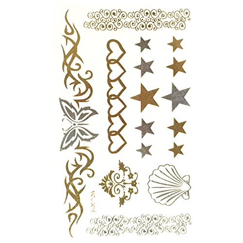 Make a statement with these celebrity inspired temporary tattoos in metallic gold, silver, and black.