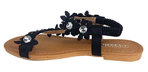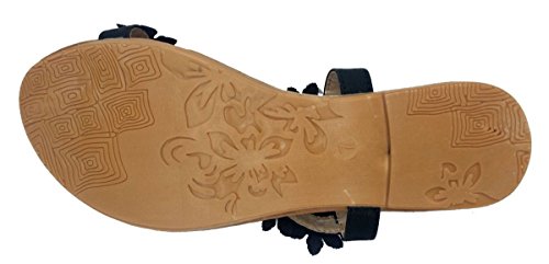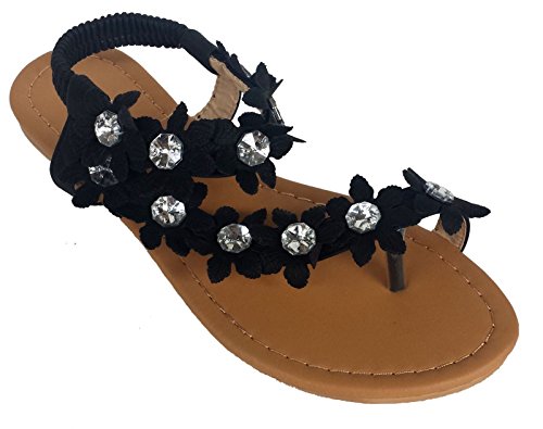 Elegant Women's Fashion Black Hawaiian Flowers Gladiator Flat Sandals