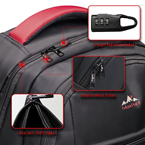 ✅ COMFORT – MAXPOINT backpack for laptop is also very convenient to carry – the S-SHAPED adjustable shoulder straps help balance the weight and provide air circulation between you and the backpack. The straps as well as the back of the backpack are well-padded to ensure MAXIMUM COMFORT.